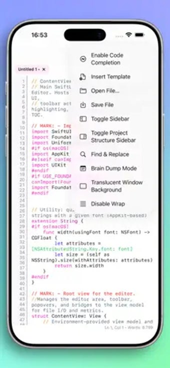 Dzięki Neon Vision Editor możesz mieć czystą, natywną aplikację do kodowania. Interfejs jest lekki i skoncentrowany, bez wymuszonych kont, inwazyjnego śledzenia ani mylących poziomów subskrypcji. Zbudowany z nowoczesnych frameworków Apple, uruchamia się szybko, przewija płynnie i obsługuje odpowiednie tryby ciemny i jasny z dopracowaną typografią.